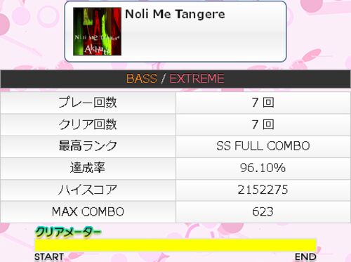 というわけで、PCのケーブル買いに行くついでにゲーセンに。夜に外出したこともあってあまりやらなかったんですが、先ずはギターから。Noli Me Tangere EXT-B (レベル:7.50)やっとフルコンしました。いつもどこかで凡ミスしていたのでなかなかフルコン…