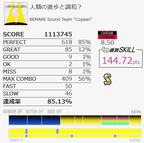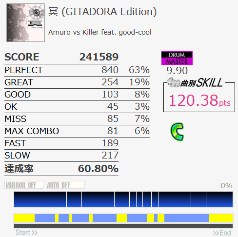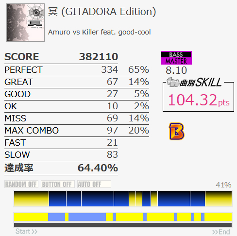 解禁作業のためにランダム選曲やったら一番最初にこれを引いたんですが、どうにかフルコンしました。