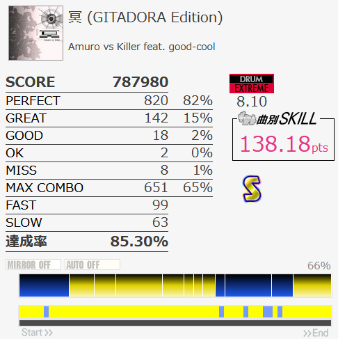 冥 (GITADORA Edition) EXT-D (レベル:8.10) MAS-D (レベル:9.90)